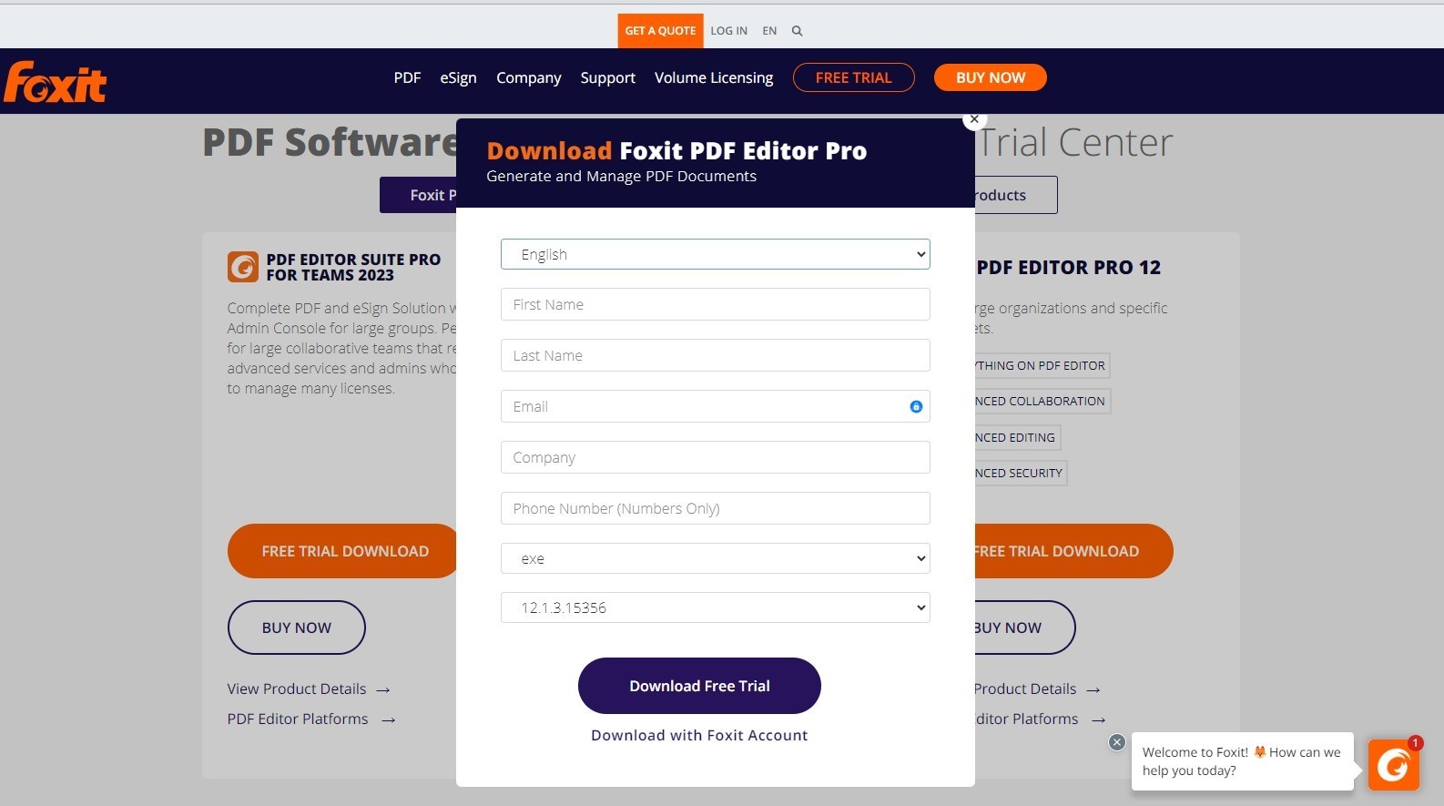 Click “Download with Foxit Account” at the bottom of the form.