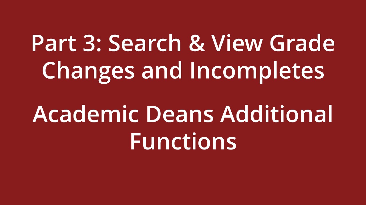 Part 3: Search & View Grade Changes & Incompletes