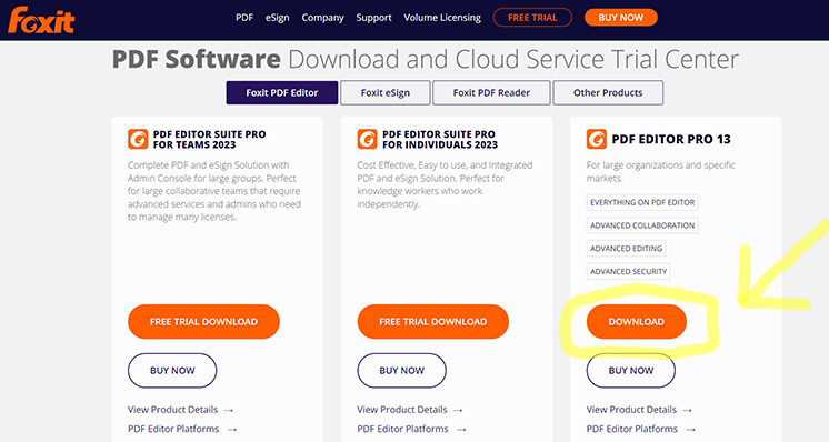 1. Once your license request is approved and processed, navigate to the Foxit download page.