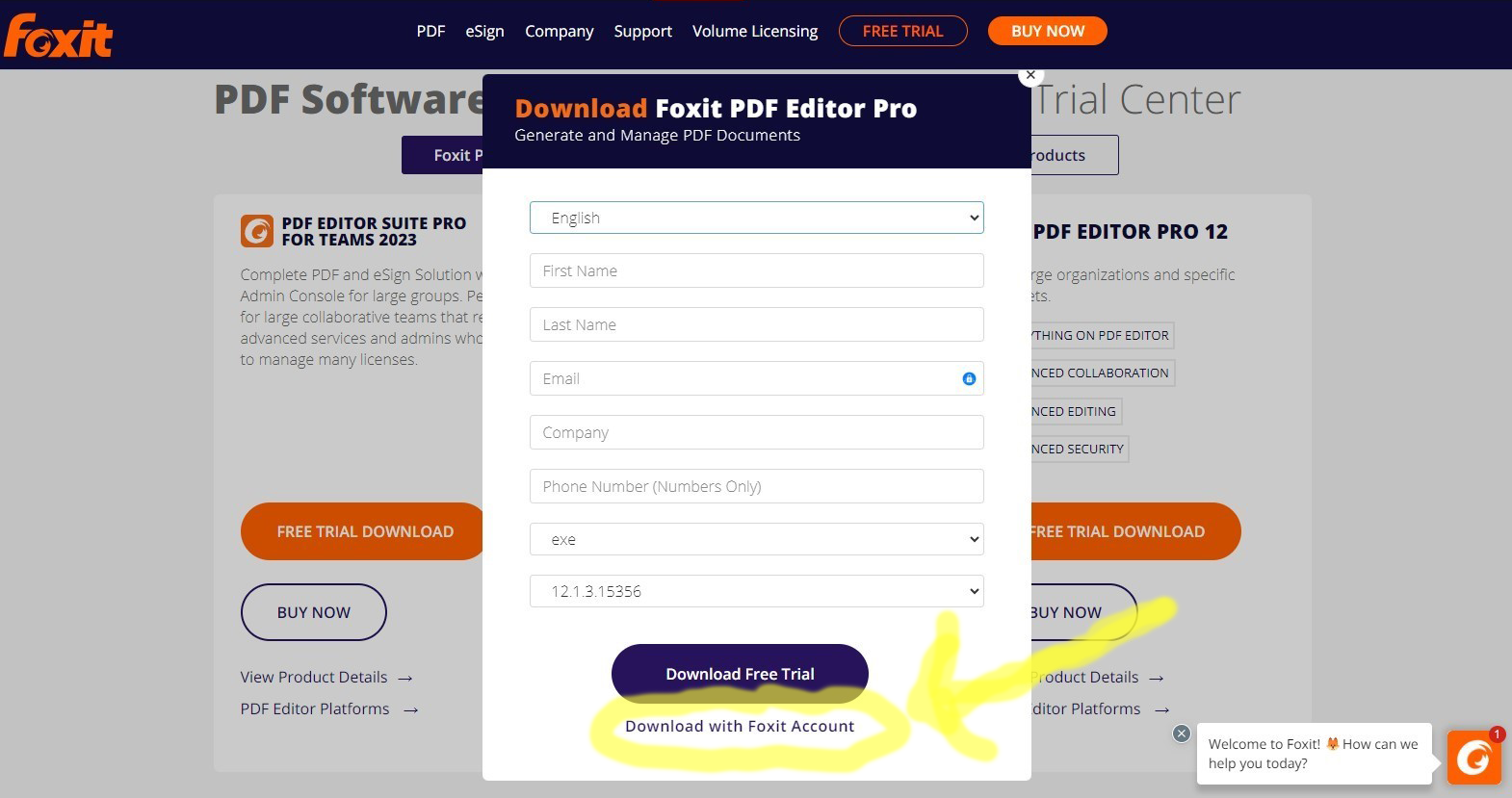 4. Click “Download with Foxit Account” at the bottom of the form.