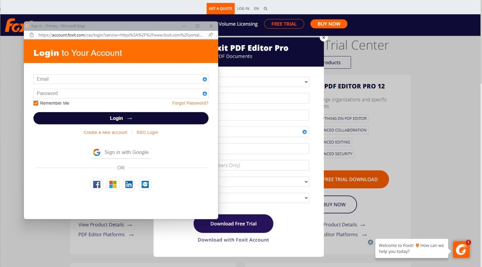 - Click “Download with Foxit Account” at the bottom of the form that opens in the web browser.