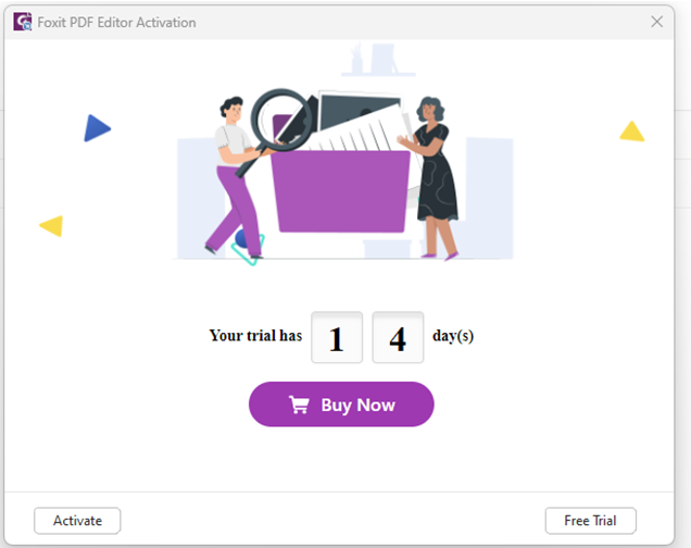 1. Launch Foxit PDF Pro and click the “Activate” button in the lower left corner of the activation window that opens.